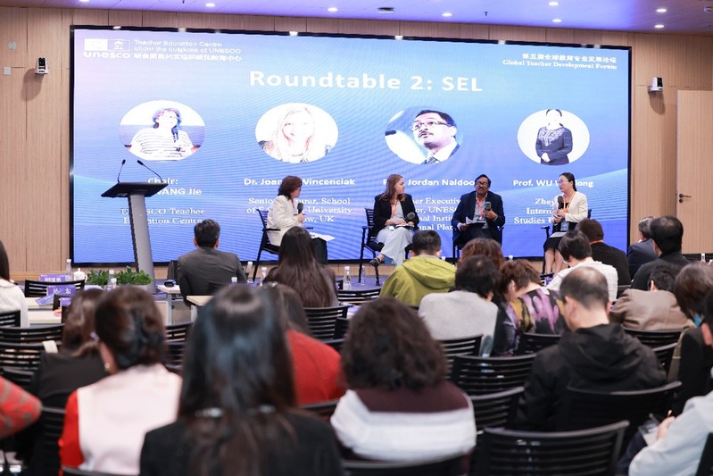 2025年11月15日至16日,第五届全球教师专业发展论坛在联合国教科文组织教师教育中心(简称“中心”)举行。本次论坛以“转型中的教学:诉求与期待”为主题,采用线下参与和线上直播的联动形式展开,吸引了来自海内外高校的千余名师生热情参与。
