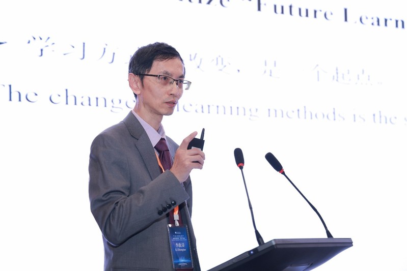 教育部中学校长培训中心主任、华东师范大学李政涛教授做了题为《从未来学习未来教学到未来教师》的主旨报告。他指出,学习方式的变革是教育转型的逻辑起点,未来教学将走向“双师协同”“融合教学”与“五育共生”,因此未来教师需具备“融通转化”与“交互育人”两大核心能力,成为“具备教育家精神的引领者”。
