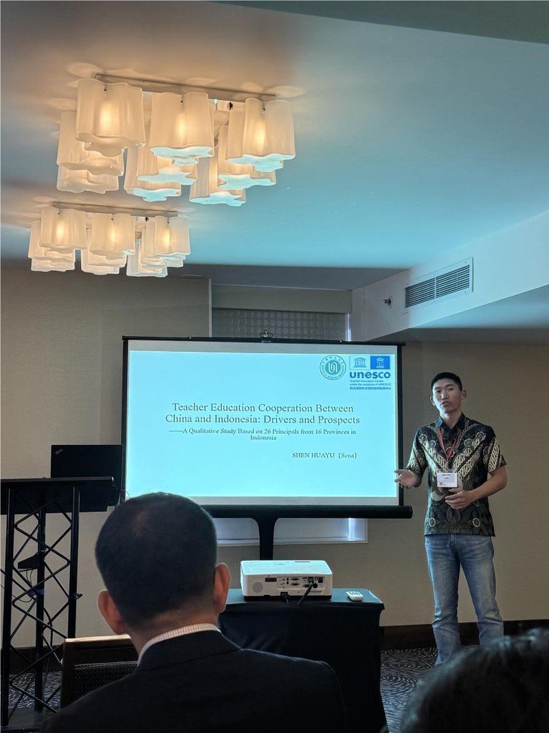硕士生沈华禹在分论坛作“中国和印度尼西亚教师教育合作的动因与展望——基于印尼26位来华交流校长的质性分析”报告,通过访谈26位来联合国教科文教师教育中心研修的印尼校长,探索中印尼开展教育合作的影响因素与未来展望,并提出了在需求侧要更清晰地了解印尼的合作需求;在供给侧要更好地打造中国教师教育品牌;同时更好地发挥外部因素的推动作用。