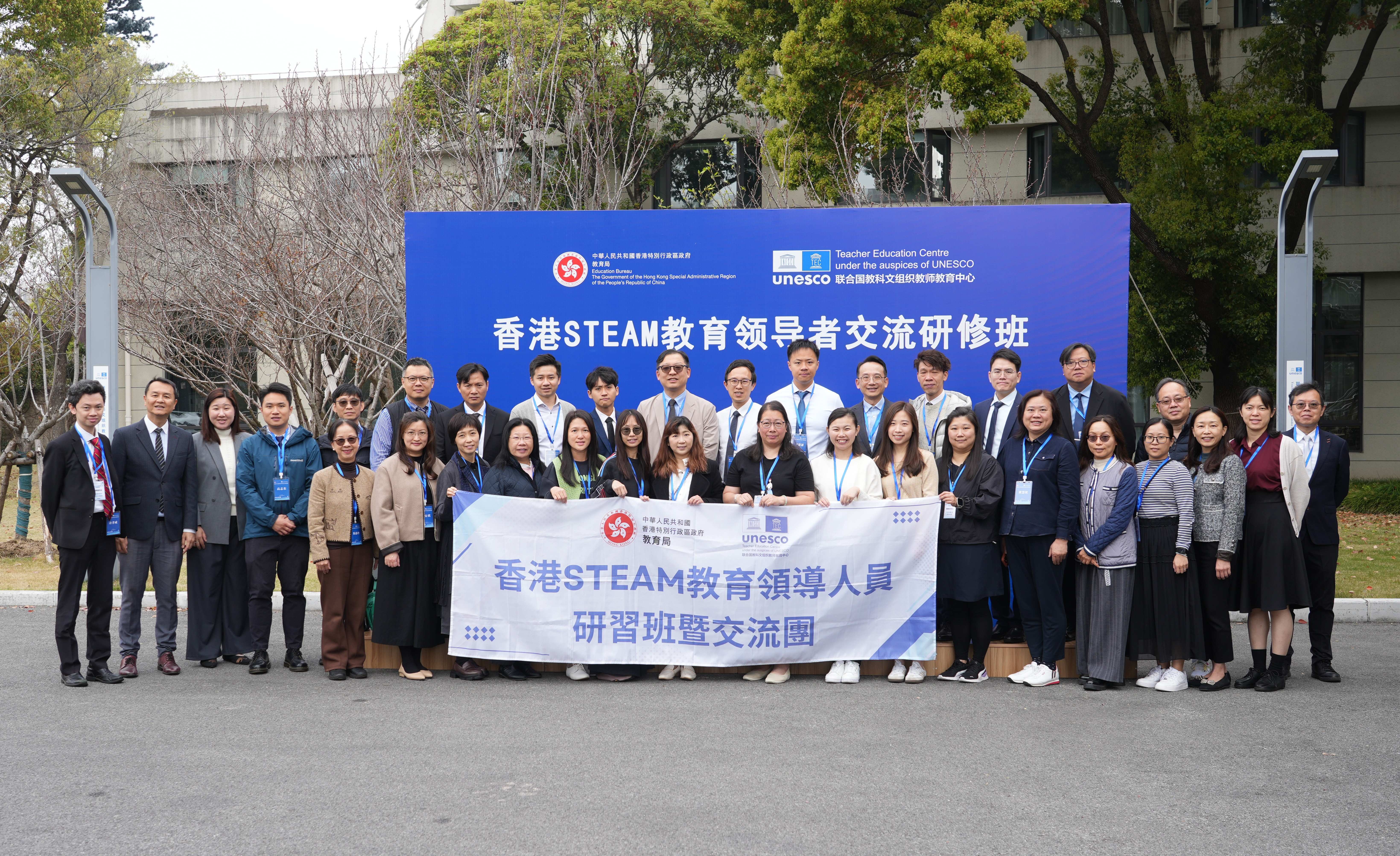 2026年3月30日下午,第二期香港STEAM教育领导者交流研修班在联合国教科文组织教师教育中心(以下简称“联教中心”)顺利举行。本次研修班由中华人民共和国香港特别行政区政府教育局(以下简称“香港教育局”)与联教中心共同举办。香港教育局高级课程发展主任庄蓉萍女士、高级课程发展主任许孝威先生以及课程发展主任吴志辉先生,上海师范大学国际教师教育中心副主任王洁教授、生命科学学院李慧教授,与来自香港的32位中小学校长和教师一同出席开班仪式。