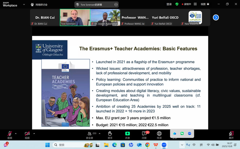 The second session, moderated by Professor Joseph Agbenyega from the Emirates College for Advanced Education, delved into local and regional mechanisms for teacher collaboration and governance. Professor WANG Jie from TEC delivered a presentation on Teaching Research Groups (TRGs) in China: An Institutionalized Mechanism for Collaborative Teacher Learning. She systematically introduced the concept, formation, and operational model of TRGs, which are prevalent in Chinese primary and secondary schools. Through a comparative analysis with Western models such as Professional Learning Communities (PLCs) and Lesson Study, she explored the challenges, opportunities, and future development paths for this traditional system in the context of emerging topics like AI and Social-Emotional Learning (SEL). Dr. Tore Bernt Sorensen from the University of Glasgow analyzed the European Union's Erasmus+ Teacher Academies initiative as a prime example of experimentalist governance. He shared insights into the EU's soft governance measures for teachers, the policy-learning effects generated by the program, and its strategic intent to integrate the teaching profession into the EU's decision-making framework.