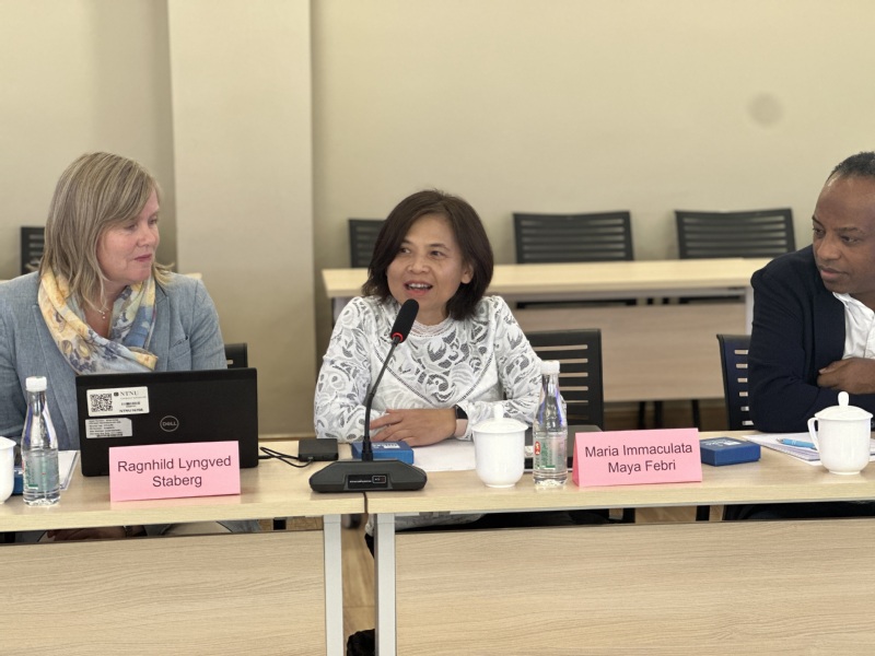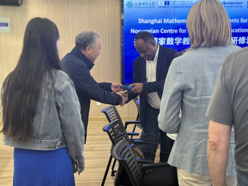 2025年10月27日上午,“挪威国家数学教育中心上海研修活动”二期在联合国教科文组织教师教育中心(简称“联教中心”)启动,挪威科技大学社会与教育科学学院丁莉萍副教授及挪威国家数学教育中心和挪威科技大学教师教育系的四位代表,Ragnhild Lyngved Staberg副教授、Maria Irnmaculata Maya Febri副教授、Svein Arne Sikko副教授、Solomon Abedom Tesfamicael副教授来沪参加本次研修活动。开幕仪式由项目负责人黄兴丰教授主持,联教中心副主任胡国勇教授出席并致辞,项目专家沈轶骅博士与上海师范大学比较教育学、初等教育学硕士、博士研究生共同参与此次活动。