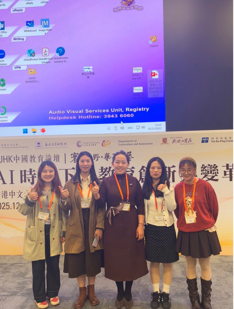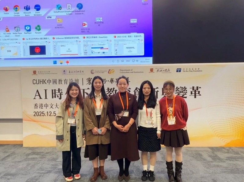 2025124日至6日,我院师生赴香港中文大学参加CUHK中国教育论坛暨教育学院60周年院庆研讨会。本次研讨会以“AI时代下的教育创新与变革”为主题,共设10个主旨报告、23场主题论坛、23场平行论坛和2场海报展示。我院宋佳副教授,博士生侯佳、吴倩以及硕士生李滢滢、刘子靖参会发言。