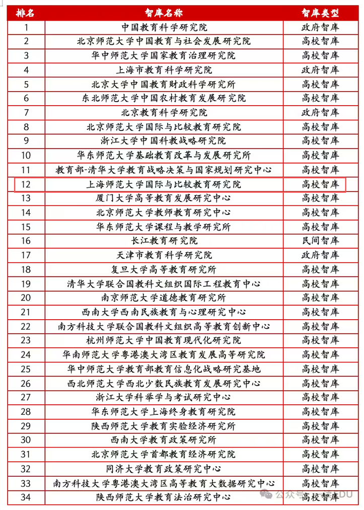 近期,上海师范大学国际与比较教育研究院智库入选国内多个权威智库排名,获得佳绩。11月29日,中国方略研究院、长江教育研究院和华中师范大学国家教育治理研究院在京发布了《2025全球教育智库影响力评价PAP研究报告》,研究院再次荣登“中国教育智库榜单”(CETTE),在国内教育智库中排名第12,较上次排名提升了19名。
