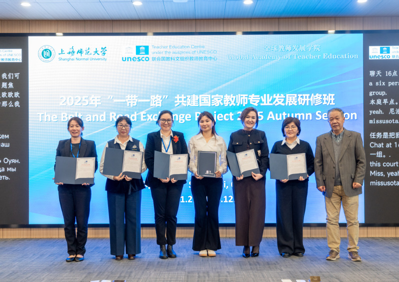 2025年12月8日,“一带一路”共建国家教师专业发展研修班闭幕式在联合国教科文组织教师教育中心(简称“联教中心”)世承讲堂举行。联教中心主任张民选教授、副主任胡国勇教授,上海师范大学国际教师教育中心副主任王洁教授,以及来自14个国家的约40位教育官员、教师教育者、专家学者及中小学教师一同出席了闭幕式。闭幕式由王洁教授主持。