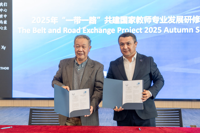 闭幕仪式开始前,在与会人员的共同见证下,胡国勇副主任与哈萨克斯坦撒马尔罕地区教育技能中心主任Anvar Kuvandikovich Sobirov 代表双方机构郑重签署了《联合国教科文组织教师教育中心与撒马尔罕地区教育技能中心合作备忘录》,此次签约是双方在前期友好沟通与充分磋商基础上的重要成果,标志着双方在教师专业发展、教育资源共享等方面的合作迈向更加务实的新阶段。