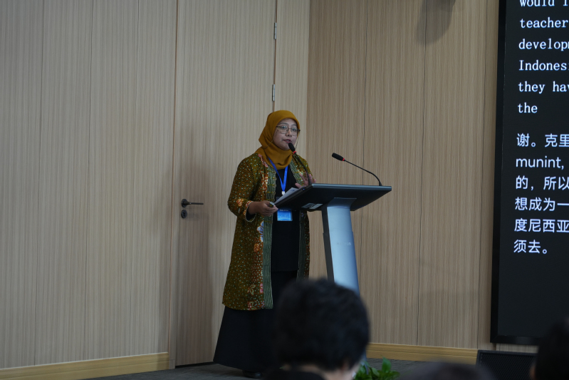 印度尼西亚雅加达国立大学国际交流处国际合作事务主管 Mutia Delina 聚焦印尼教师培养最佳实践,重点介绍了该校在本国教师教育体系中的重要角色。印尼教师需要在雅加达国立大学等指定师范大学完成教育学士学位,完成学士学位后,准教师和在职教师需参加教师专业培训项目以获得认证。