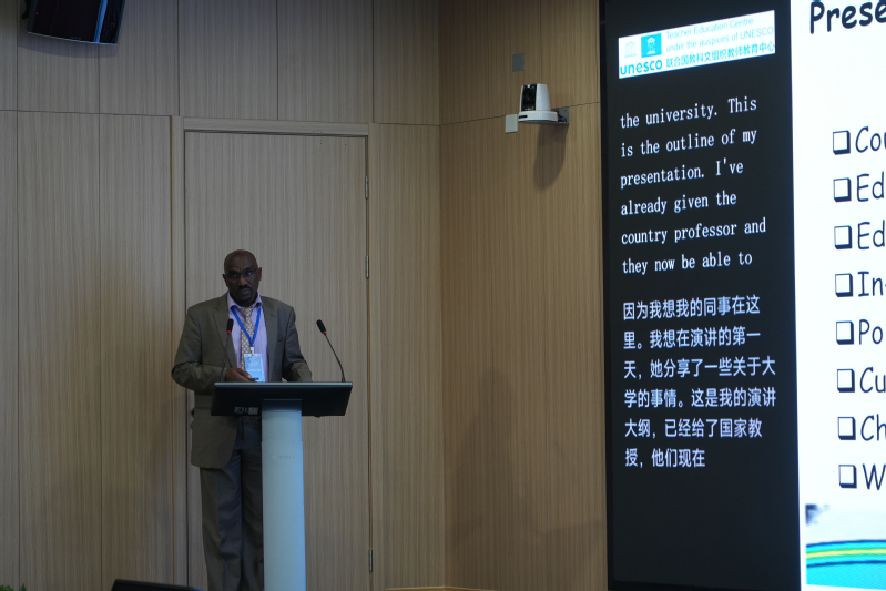 津巴布韦津巴布韦大学讲师 Tapiwa Loveson Gopo 的汇报梳理了津巴布韦教师教育的发展历程:殖民时期(1890—1980年)呈现种族隔离特征,培训聚焦基础教学技能且服务殖民需求;独立后过渡期(1980—2000年)大力扩张师资规模,推行三年制文凭项目,课程本土化并强调专业化;2000年至今则迈向现代化与专业标准化,引入核心素养培训、开放与远程教育等模式。他介绍,该国当前教师教育体系包含师范学院、大学、远程学习机构三类主体,采用同步式、连续式等培训模式,注重以学习者为中心的教学方法,由多个机构负责质量保障。他也提出了该国面临的资金及基础设施不足、教师流失与人才外流等挑战,呼吁政策制定者、国际合作伙伴等多方协作,以应对教育危机,助力津巴布韦2030年愿景实现。