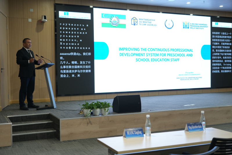 哈萨克斯坦撒马尔罕地区教育技能中心主任Anvar Kuvandikovich Sobirov强调了教育在新乌兹别克斯坦国家战略中的核心地位,介绍了《教师地位法》在提升本国教师职业吸引力方面的重要作用,同时,他还介绍了本国在提升学校现代化与教师标准以及实施纵向教师专业发展体系方面的举措。