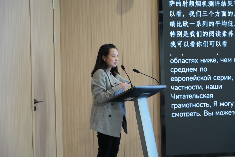 哈萨克斯坦阿拜哈萨克国立师范大学共和国教育方法委员会学术秘书 Zhanna Zhussupova 介绍了全球教育发展趋势及哈萨克斯坦教师教育体系的趋势与挑战,展示了哈萨克斯坦高等及研究生教育的关键成果,重点聚焦阿拜哈萨克国立师范大学,详述其建校历史(1928 年成立,超 95 年办学史)、办学愿景与使命、院系设置、师生规模、高就业率等核心情况,以及该校的国际合作成果,并全面展现了哈萨克斯坦教师培训体系的发展现状、特色举措及该校在其中的引领作用。